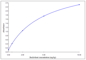 荞麦蛋白检测的线性范围为0.5 - 10 mg/kg,吸光值与荞麦蛋白浓度呈正相关。将酶标仪450 nm下测量的吸光度值导入本公司提供的专业数据分析软件中便可轻松完成数据分析。