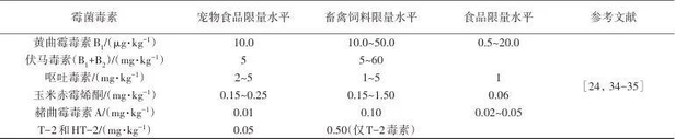 表2 宠物食品、饲料和食品中霉菌毒素限量水平